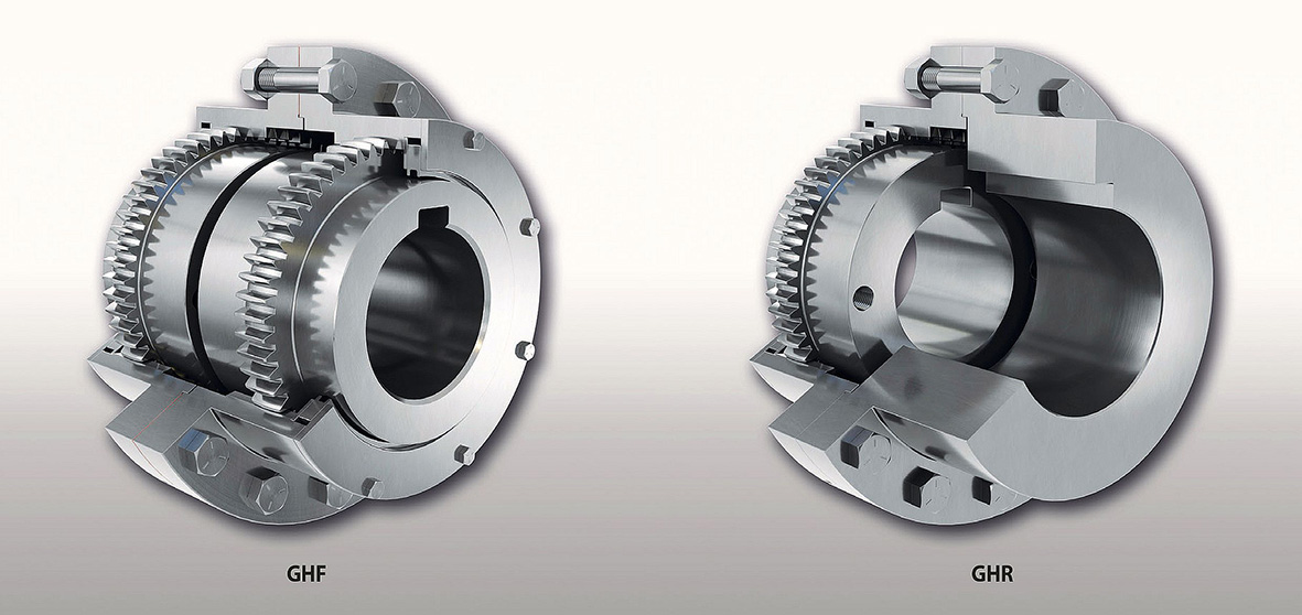 With the new RINGSPANN gear couplings of the GHF and GHR series, drive technology designers have an innovative shaft connection that offers them numerous advantages. They are able not only to improve the performance and operational reliability of the powertrains, but also to reduce the repair and maintenance costs of their customers. The standard range already offers them a choice between twelve different sizes. Both the double engagement gearing GHF and the single engagement gearing GHR are available for bores from 41 mm to 276 mm and for torques from 2,660 Nm. Both versions also have in common that their nitrided teeth are made of high-strength quality steel and that they have an O-ring seal that keeps grease back and dirt particles away. ms